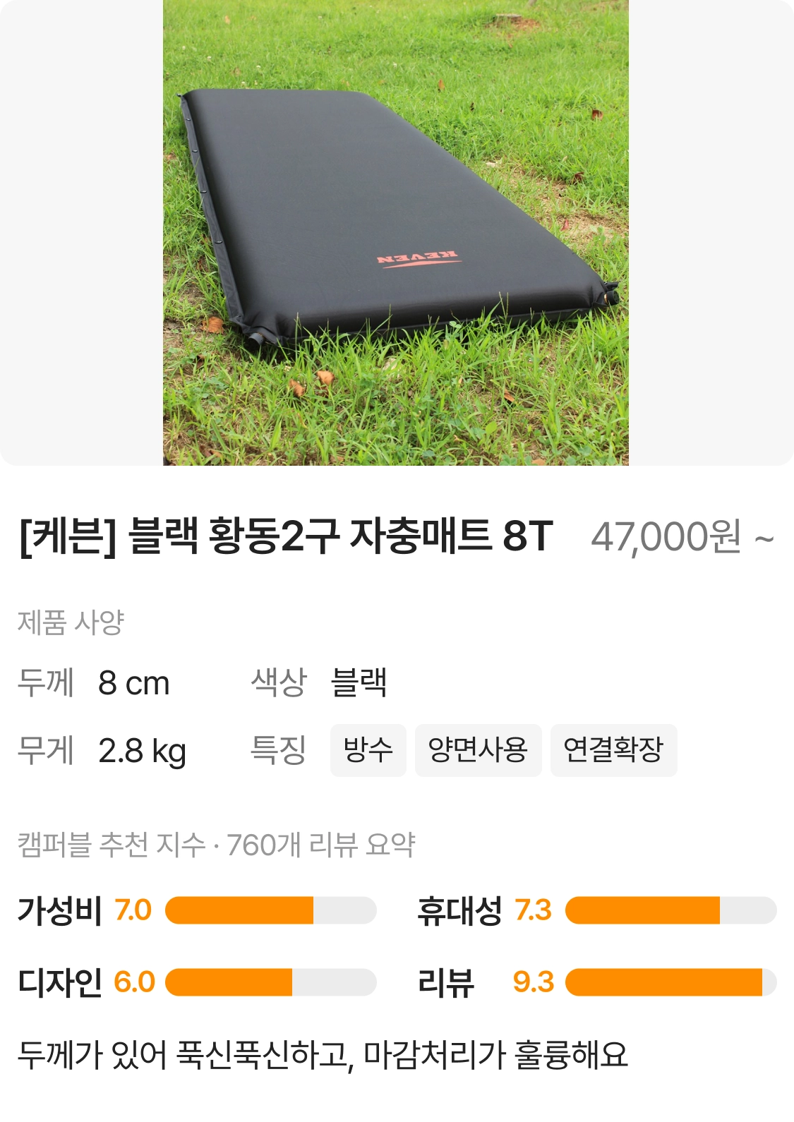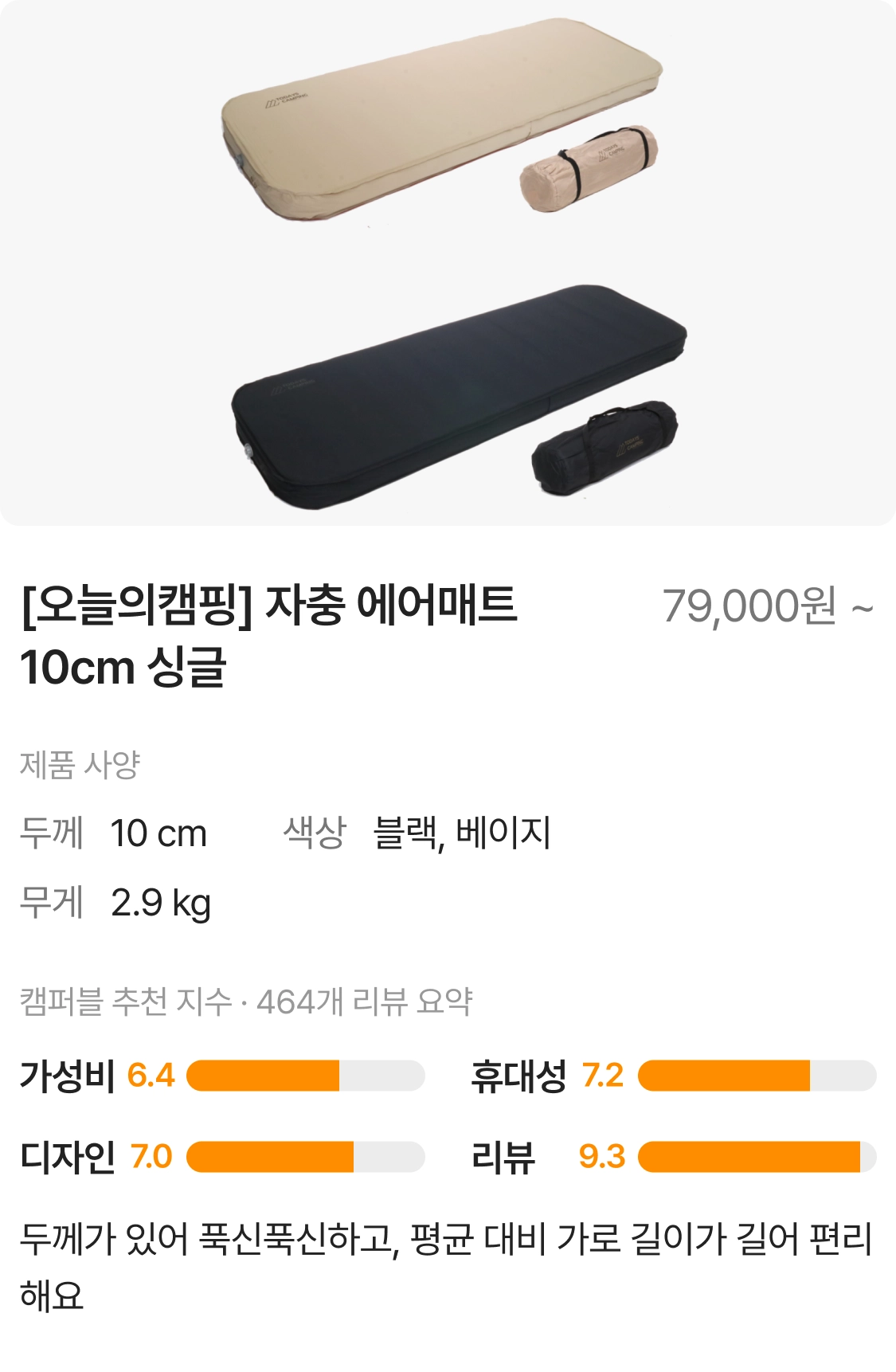 09 꿀잠을 위한, 캠핑 매트 (현재)