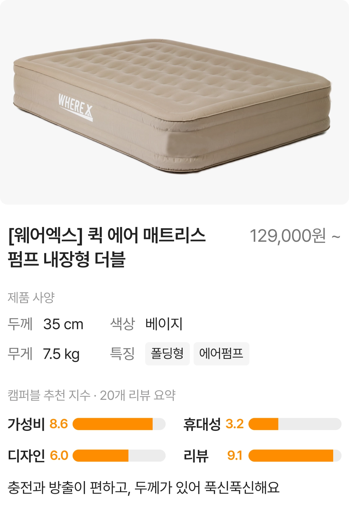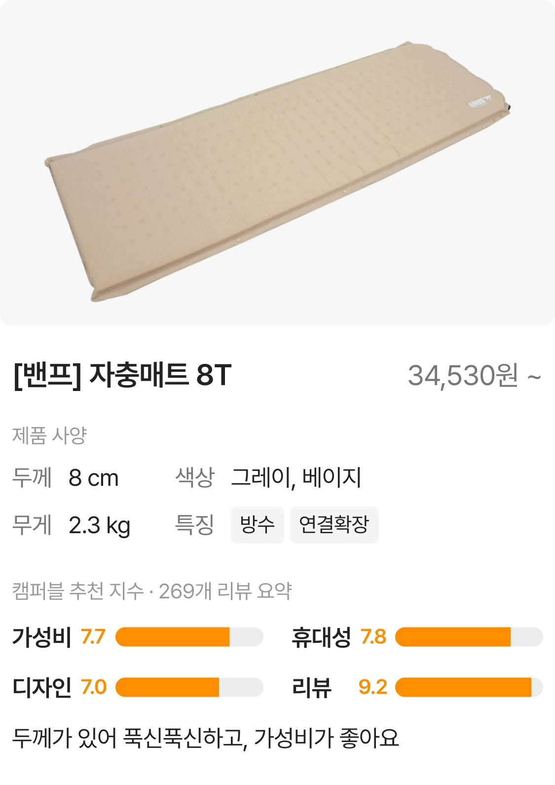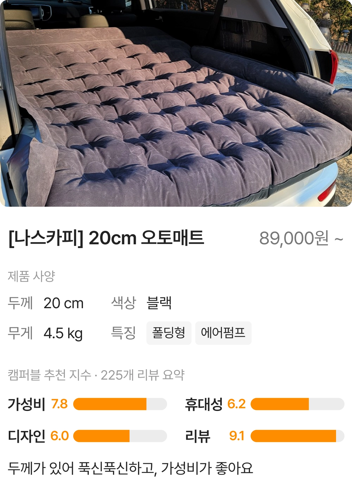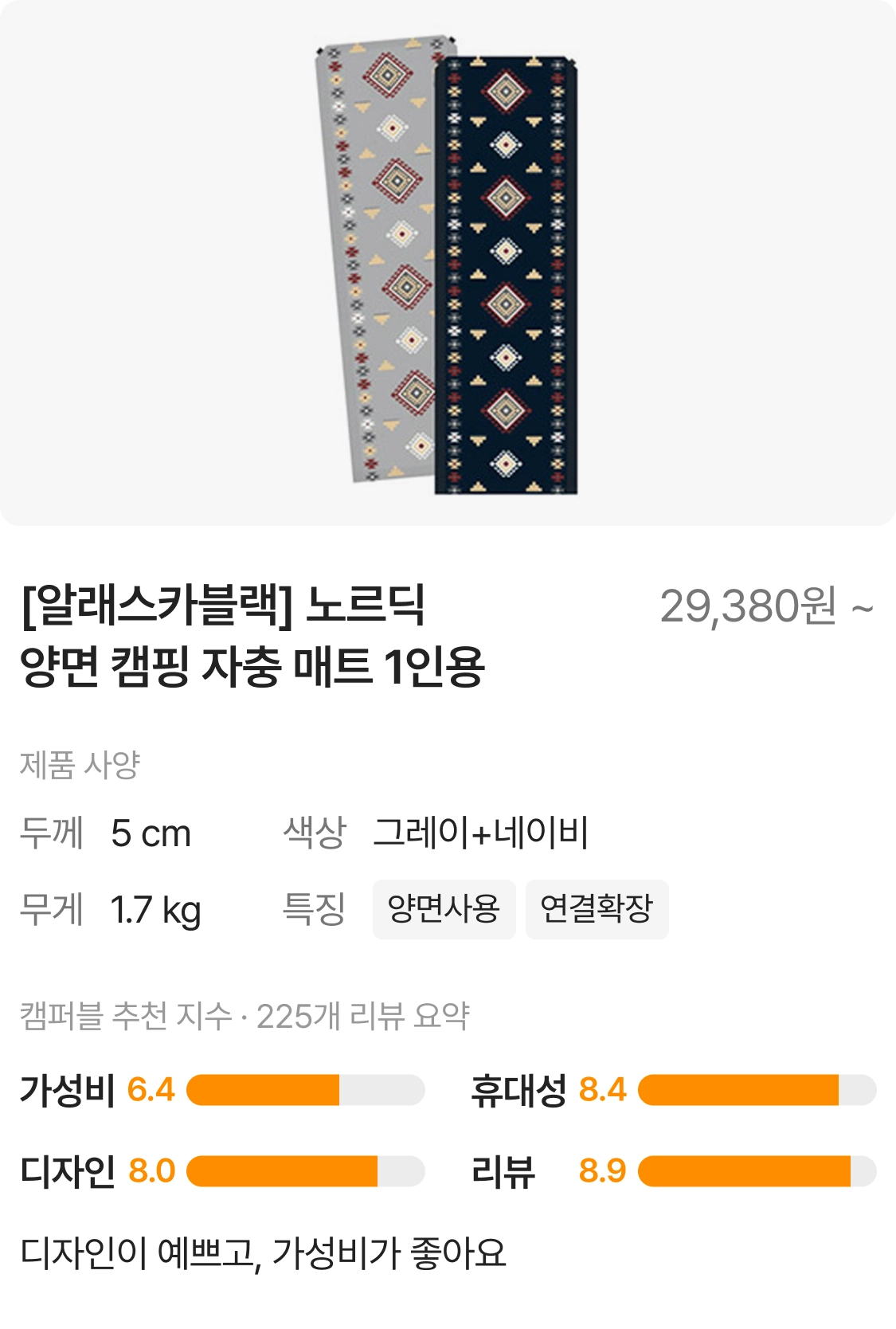 캠퍼블이 블로그, 카페, 쇼핑몰 리뷰를 모두 모아 (1) 사용성, (2) 휴대성, (3) 가성비, (4) 디자인 4가지 기준으로 분석&점수화한 지표에요. 캠퍼블 랭킹 Top10 상품을 추천해 드릴게요!