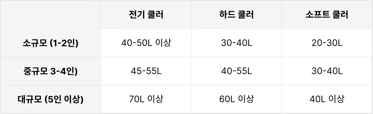 캠핑 쿨러를 전기, 하드, 소프트 종류별로